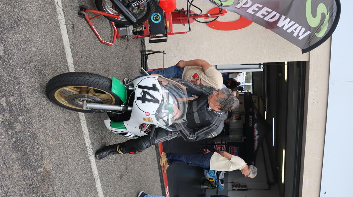 Vendredi 17 mai , dès l’ouverture du circuit, les premiers arrivant sont là: déballage et mise en place de notre stand dans le box 16. On se retrouve juste à côté du box Yamaha Classic Héritage qui avait amené leurs 750 pour faire rouler entre autre Christian Sarron et Giacomo Agostini.